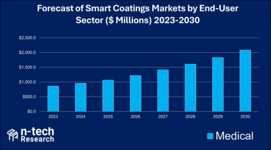 In this report, n-tech Research provides a market forecast, analysis, and outlook for Smart Coatings use in the medical sector, a market that we expect to grow to nearly $2.1 billion in 2030 .