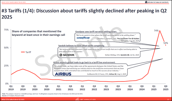 - 関税への対応は第3四半期の状況に合っているか?関税は依然として最も多く挙げられているトピックです。価格設定、サプライヤーミックス、緩和戦略 (デュアルソーシング、ニアショアオプションなど) を再確認します。