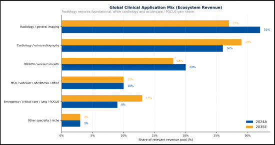 - 市場はますますソフトウェア主導型へと移行しています。本レポートの中心的な論点は、価値がプローブの上流へと移行し、画像取得のガイダンス、構造化レポート、品質保証 (QA) 、ガバナンス、クラウドレビュー、エンタープライズワークフローへと移動している点にあります。