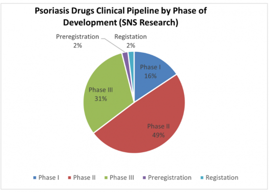 図例:開発段階別乾癬治療薬パイプライン候補の分布(%)